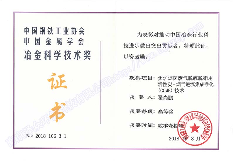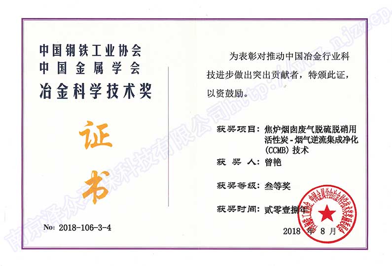 公司專(zhuān)長(zhǎng)于活性炭煙氣凈化技術(shù),創(chuàng)新能力突出,成功研發(fā)具有獨(dú)立自主知識(shí)產(chǎn)權(quán)的活性炭-煙氣逆流集成凈化CCMB(ActivatedCarbon Countercurrent Moving Bed)技術(shù),形成獨(dú)立自主知識(shí)產(chǎn)權(quán)體系,由中國(guó)金屬學(xué)會(huì)評(píng)價(jià)鑒定達(dá)到國(guó)際領(lǐng)先水平,獲得冶金科技三等獎(jiǎng),被評(píng)為“鋼鐵產(chǎn)業(yè)鏈綠色低碳好技術(shù)”,入選中國(guó)鋼鐵工業(yè)協(xié)會(huì)先進(jìn)節(jié)能環(huán)保技術(shù),入選生態(tài)環(huán)境部國(guó)家先進(jìn)污染防治技術(shù)目錄推廣技術(shù)。